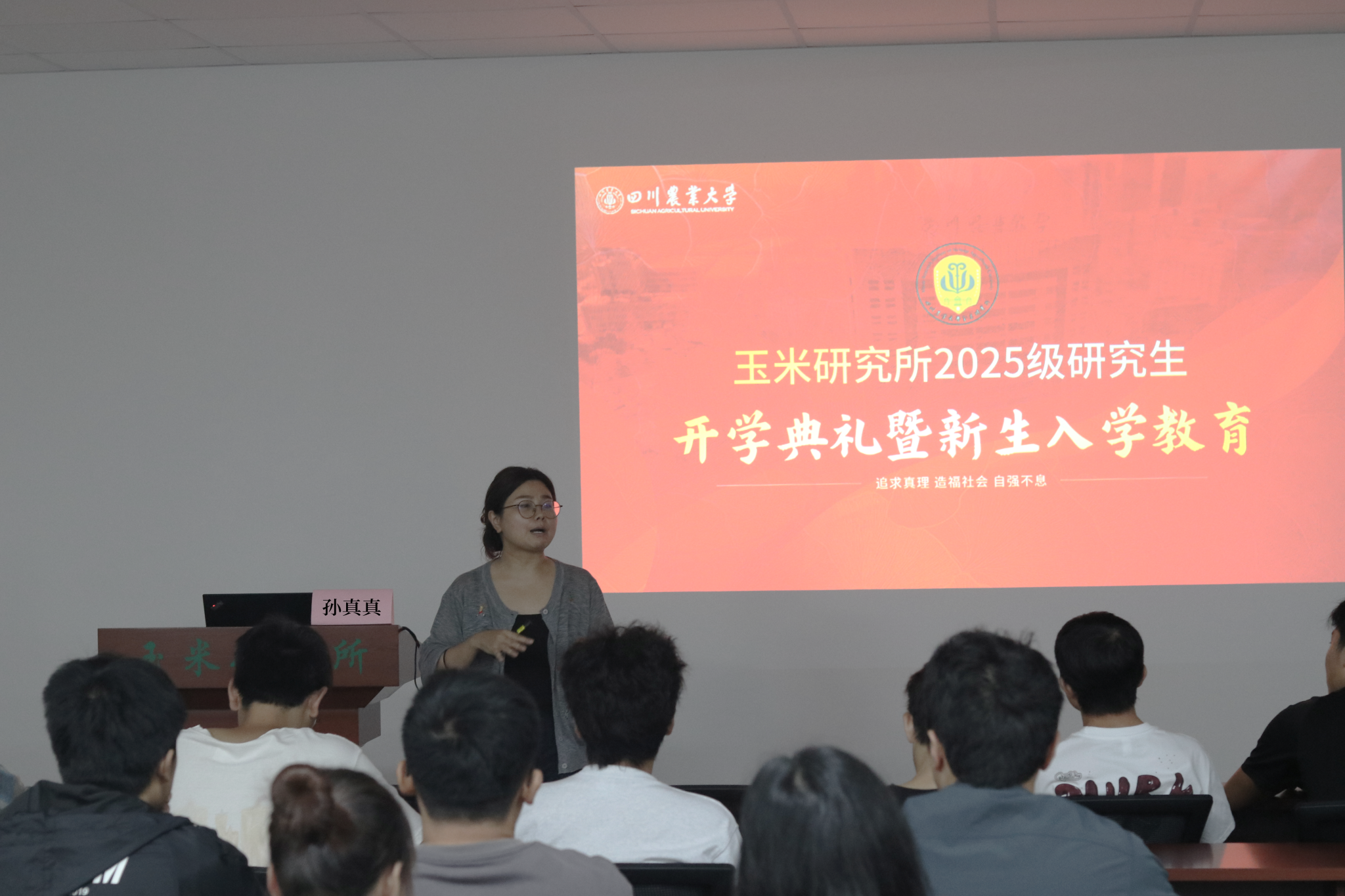 活动伊始,兰海书记以风趣幽默的话语作欢迎致辞,既饱含对新生加入研究所大家庭的热烈期许,也系统梳理了玉米研究所的发展脉络——从建所初期的科研探索,到如今在玉米遗传育种、栽培技术等领域取得的突破性成果;同时深入解读了研究所“立足农业前沿,服务粮食安全”的办所理念,以及在玉米抗逆性研究、高产优质品种培育等方面的学科特色,让新生们对即将扎根的科研平台有了全面且深刻的认知。 随后,沈亚欧副所长聚焦“科研道德、学术诚信与学术规范”展开专题授课。她摒弃枯燥的理论说教,而是结合科研工作中真实发生的案例,用深入浅出的语言剖析学术不端行为的危害,从数据真实性、论文署名规范到成果引用要求等方面,清晰阐释了科研道路上必须坚守的“红线”与“底线”,引导新生们树立“以诚信立身,以严谨治学”的学术态度。 为帮助新生快速适应研究所管理模式,硕士生导师罗博文、汪青军共同就研究生管理制度进行细致讲解。两位导师围绕日常考勤、科研项目申报、学术报告要求等具体规定,逐条解读管理条例;同时结合研究生培养方案,明确了不同阶段的学习任务——从文献积累、实验技能训练到学位论文撰写的时间节点,以及毕业所需满足的学术成果要求,让新生们对未来几年的科研学习规划有了清晰的时间轴与目标感。孙真真老师就研究生自我管理与自我服务机制为专题向新生们介绍研究所学生会,并由研究所学生会骨干成员分享了自身的科研与校园生活经验,鼓励新生们在专注科研的同时,积极参与学术论坛、科普志愿活动、学科竞赛等各类校园及社会实践,在实践中锻炼沟通协作能力与组织领导能力,实现“科研能力”与“综合素质”的双向提升。实验室是科研成果的“诞生地”,安全则是科研工作的“生命线”。9月21日的活动中,研究所实验室管理老师汪静以“实验室安全”为主题开展宣讲,从实验室危险源识别、化学品储存与使用规范,到实验操作中的防护要点,再到突发安全事故的应急处理流程,逐一进行详细说明;结合各类实验仪器的操作规范、实验室分区管理要求等进行讲解,让新生们将安全知识从“理论”转化为“实操认知”。
